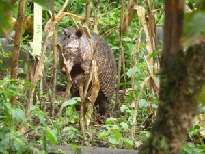 After much anticipation, and nearly 6 weeks of waiting, we finally had our first visit from the 9 banded armadillo with battle scars, dubbed ´Pablo´ by previous managers. We had read much about Pablo in the managers´ journal, and seen fresh evidence of armadillo activity nearly every day, but our first actual glimpse came as a pleasant surprise. He nosed around the garden for a few minutes, unmindful of us, before climbing nimbly over the fence that was built to keep him out.