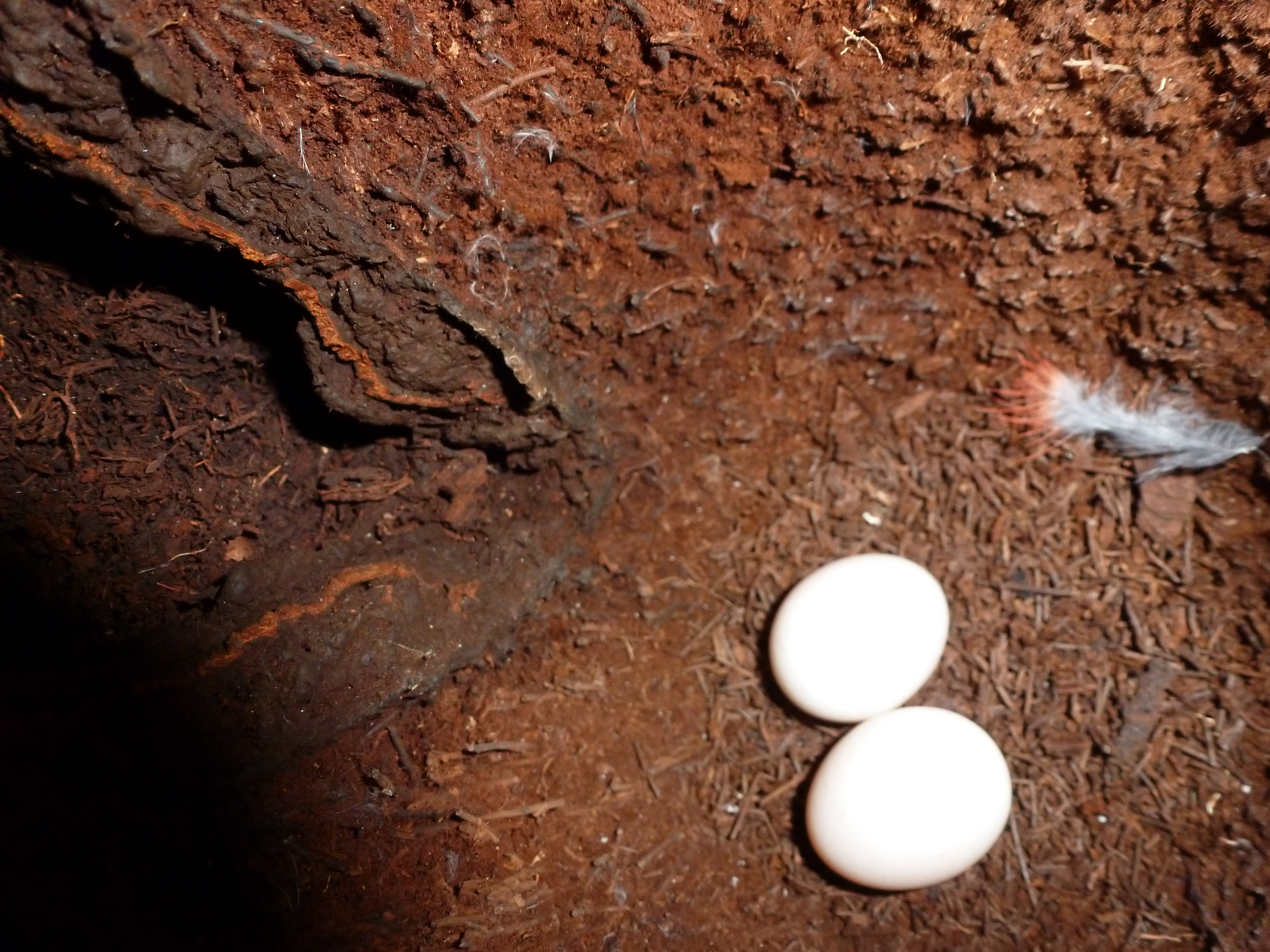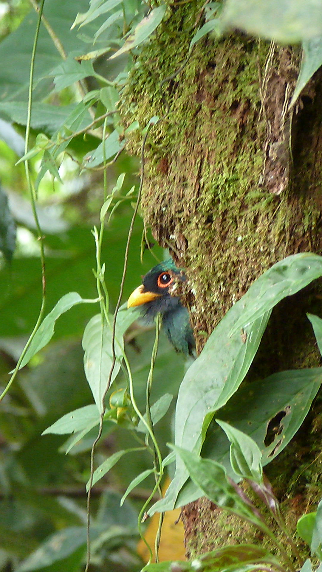 One day, while clearing Sendero Bonito and checking on the new steps we´d built, Shyama let out a yell when he nearly bisected a masked trogan that came flying out of a hollow tree stump and only avoided his machete´s momentum by a few inches. These birds are known to nest in cavities of dead trees, fairly low to the ground. Our suspicion that this bird was guarding or building a nest was confirmed later that week, when we returned for a closer look.