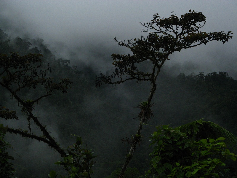 Epiphytes thrive in the constant rain. Literally plants living on the surface of other plants, epiphytes hang from trees, passing brigades of raindrops from leaf to leaf in descending order to the ground.