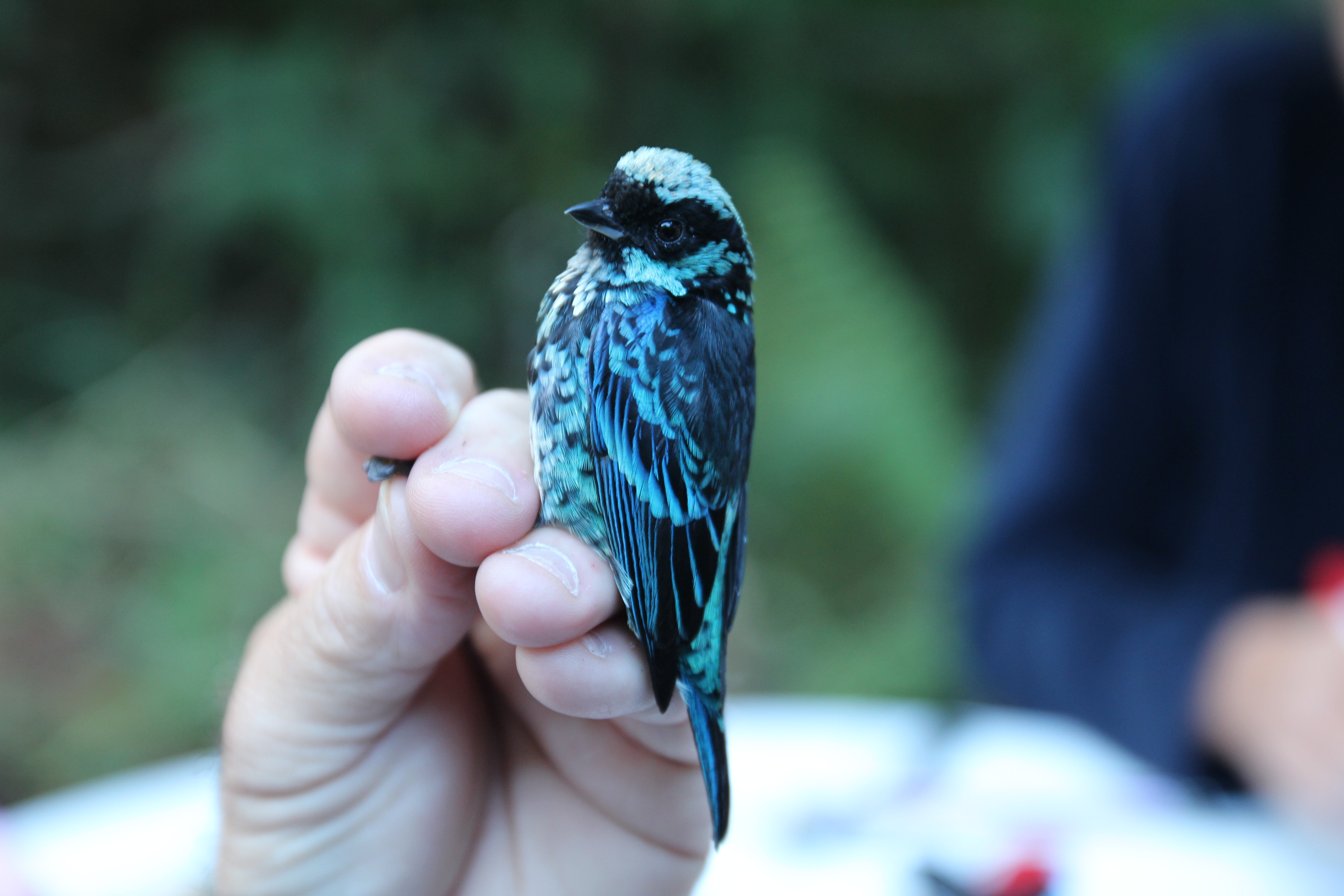 We caught the most diverse range of bird species in the pasture/forest edge. The reason for this being that the nets were ideally located to catch both forest and pasture specialists. For example this is where we caught most of our tanager species as they enjoy foraging on pasture edges. Below we have pictures of the Beryl Spangled, Flame Faced and Bay Headed Tanagers.