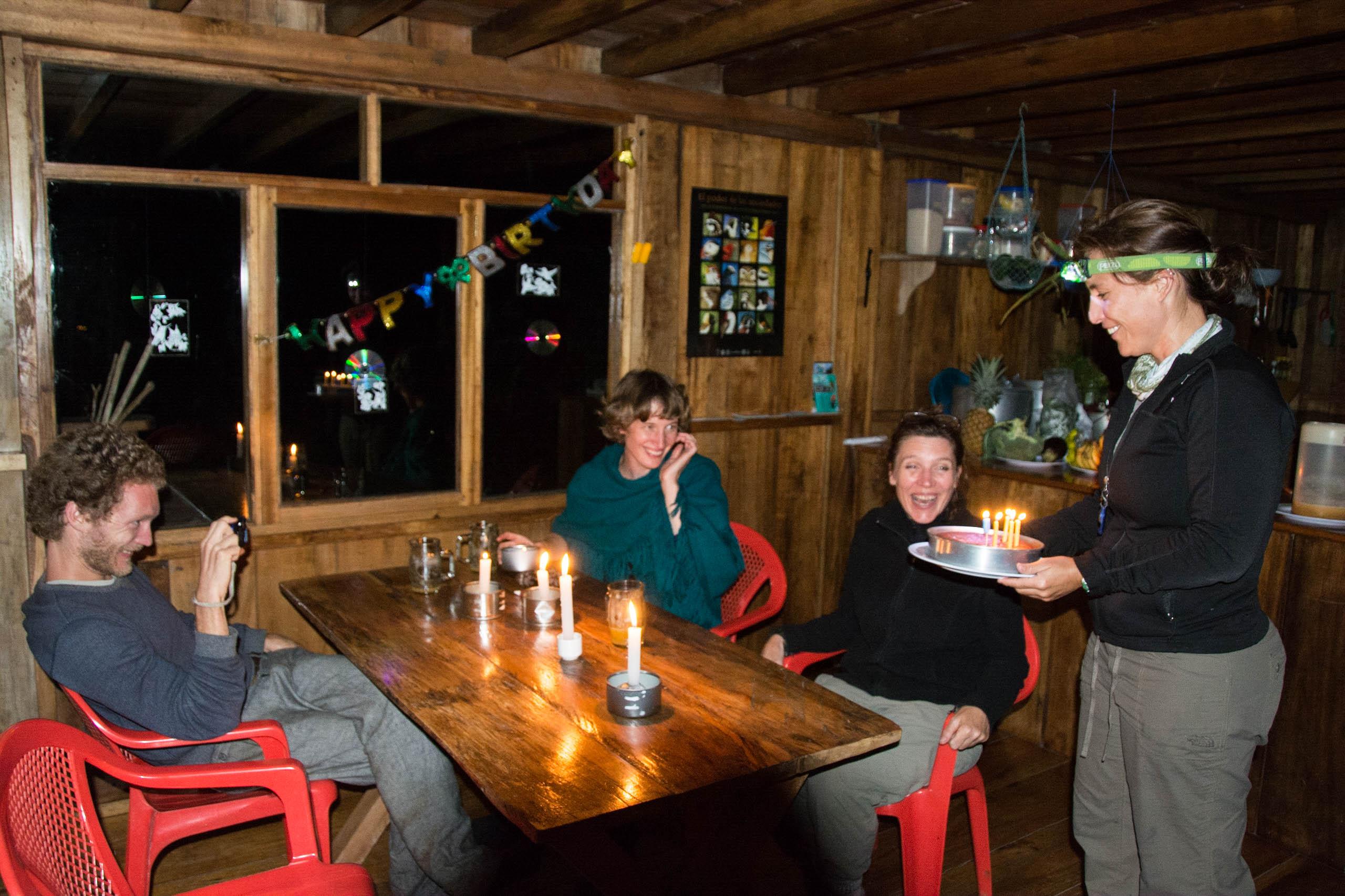 We celebrated a birthday for one of our multi day visitors, Jane Hulland, and baked an amazing batch of birthday-candle-topped melt-in-your-mouth brownies for her using locally produced cocoa from Mindo’s El Quetzal Café. Que rico!