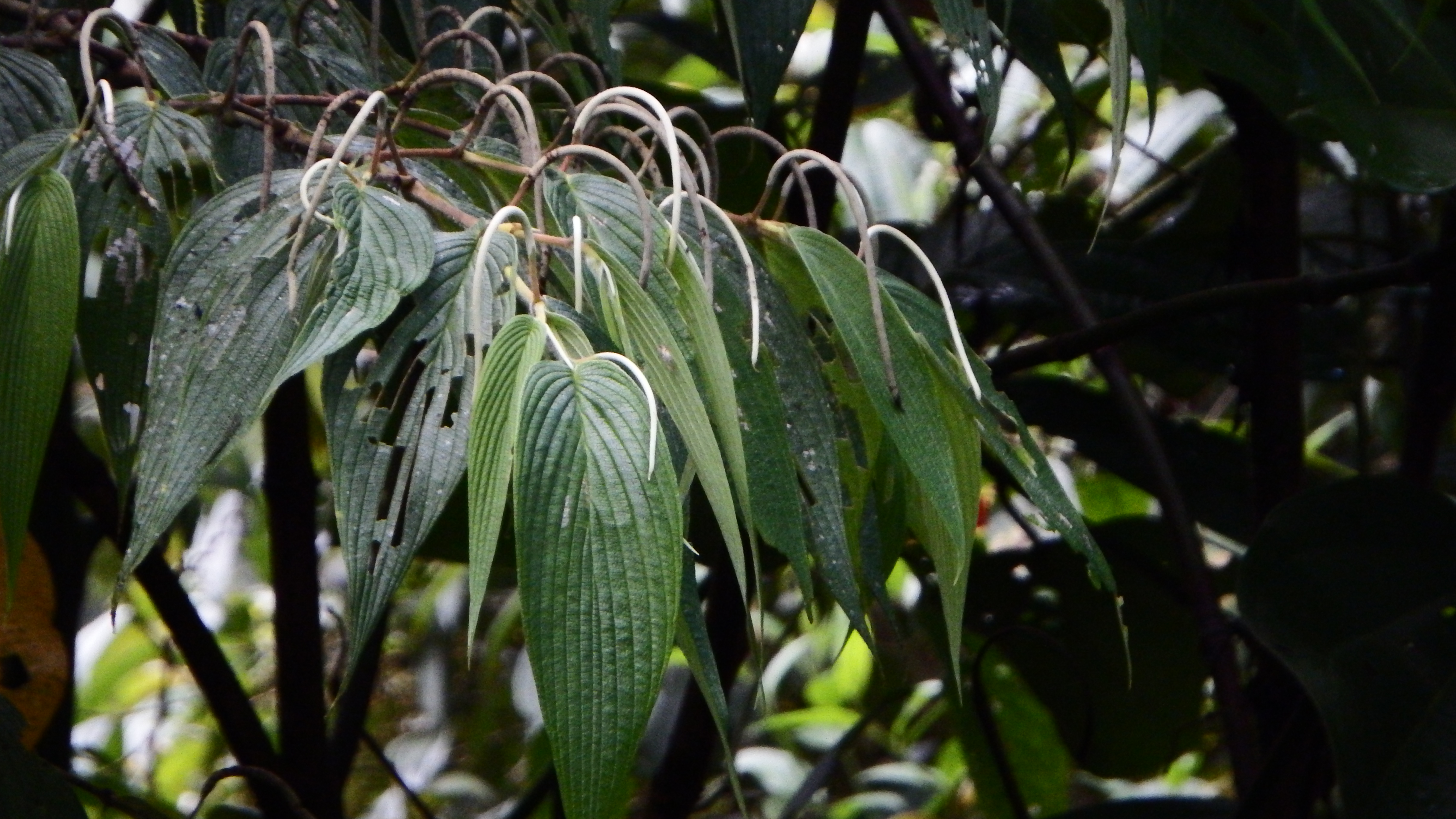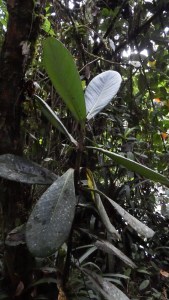 The dangling pointed leaves and flower stalks of Piper sp. are easily seen along the entry trail to the reserve. According to Castner, Timme, and Duke in A Field Guide to Medicinal and Useful Plants of the Upper Amazon, the roots are used as a remedy for kidney stones. Piper sp. is also used for lower back pain, toothaches, and to aid healing in women who have just given birth.