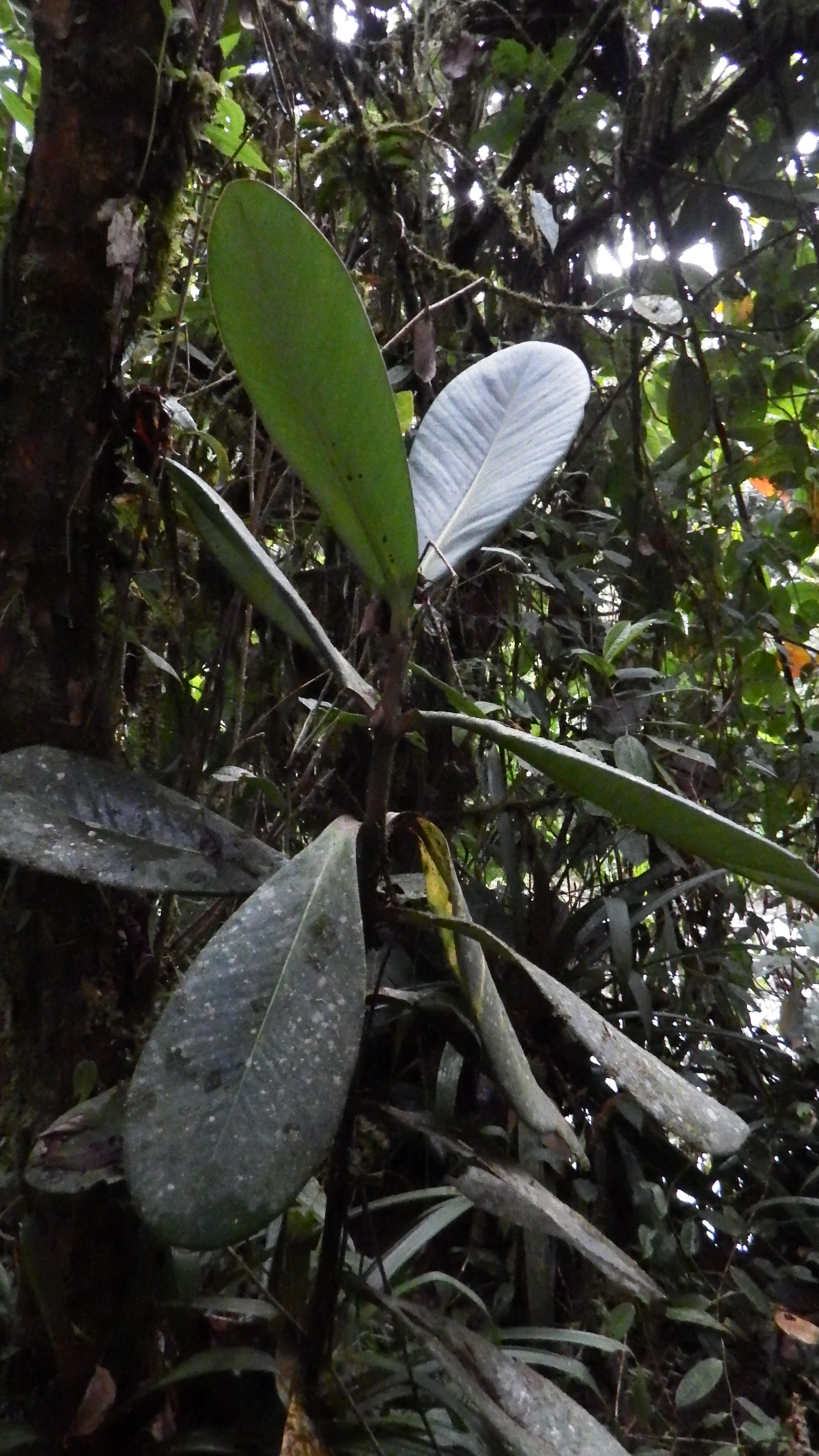 This sprawling native epiphyte can be found along trails near the cabin. It has large, simple, opposite leaves which are used as an astringent. Its fruit is an edible star-shaped capsule. According to Tobias Policha in Plants of Mindo, there are 63 species of Clusia in Ecuador, five of which are endemic. The species that we see at the reserve has a white, almost fleshy sweet-scented flower.