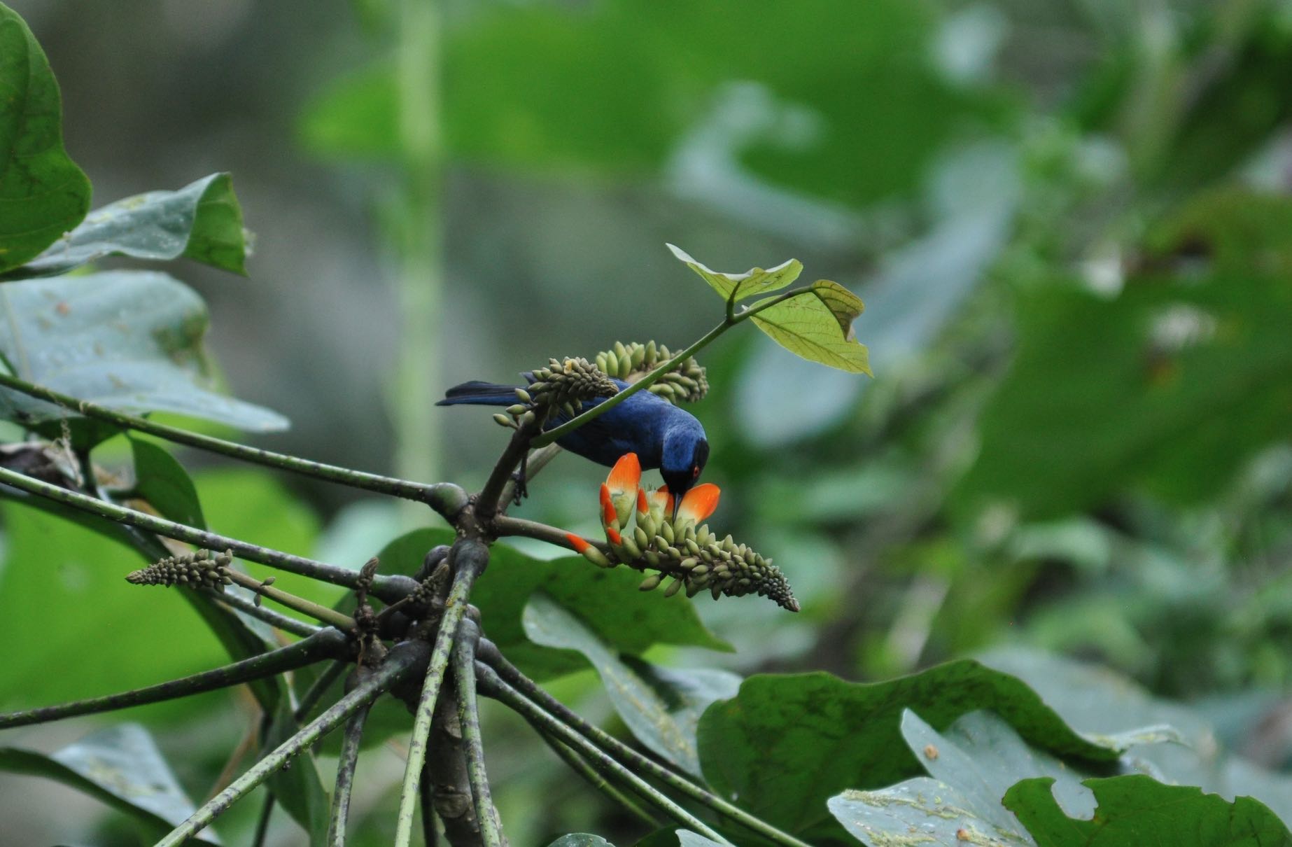 The abundance of plant life is great news for the animals of the cloud forest. All these plants need to reproduce, and they do so by means of their flowers, fruits, and seeds which are important food sources for insects, birds, and mammals who are in turn food for reptiles, amphibians, bigger birds, and bigger mammals. Almost any time we look at the tree, there is some amount of movement from the animal life it draws in. A whole food web can be seen being played out in our front yard.