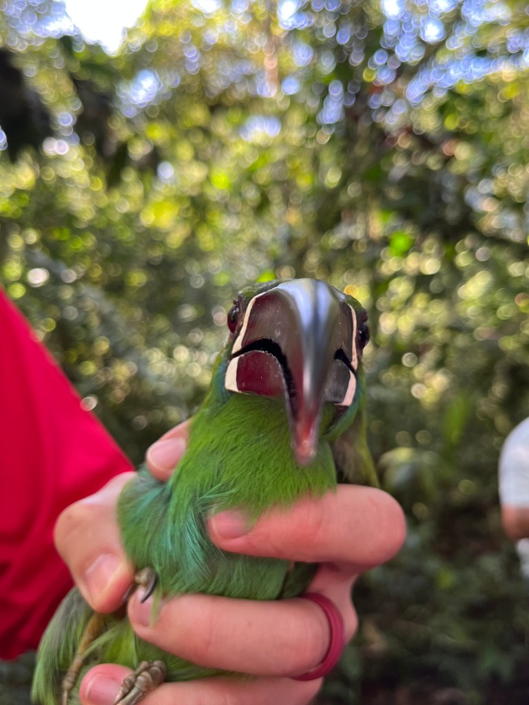 Most recently, my thoughts on this topic have been reignited by the August 2023 bird banding workshop here at the reserve. This is a two-week event that we have here twice per year – once in the winter (the wet season) and once in the summer (the dry season). Participants come out to gain experience, either for personal or professional reasons, with mist-netting and banding birds. Emily and I were fortunate to be able to be a part of it, and to get to know a very cool group of people from around the U.S., as well as a warm group of Ecuadorians who come to help run each workshop. We had the opportunity to handle and band some unique birds, and to solidify and expand our identification skills.