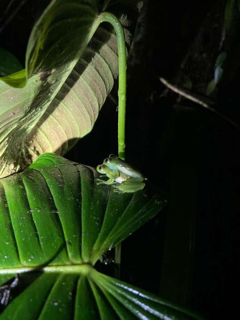 Just as the seasons change, the gradient of day to night offers new cacophony of sounds, with frogs maintaining the overwhelming majority. Despite this being the season of rain, we experienced a drought for over a week, much to the chagrin of the amphibian life that thrives in the moist cloud forest. However, after two days of consistent rain, a trip down to the river revealed some reveling in the return to normality. About a dozen Emerald glassfrogs were perched on leaves overhanging the Rio Nambillo, some expanding in size to produce metallic calls and others caught amplexing for the future generations.