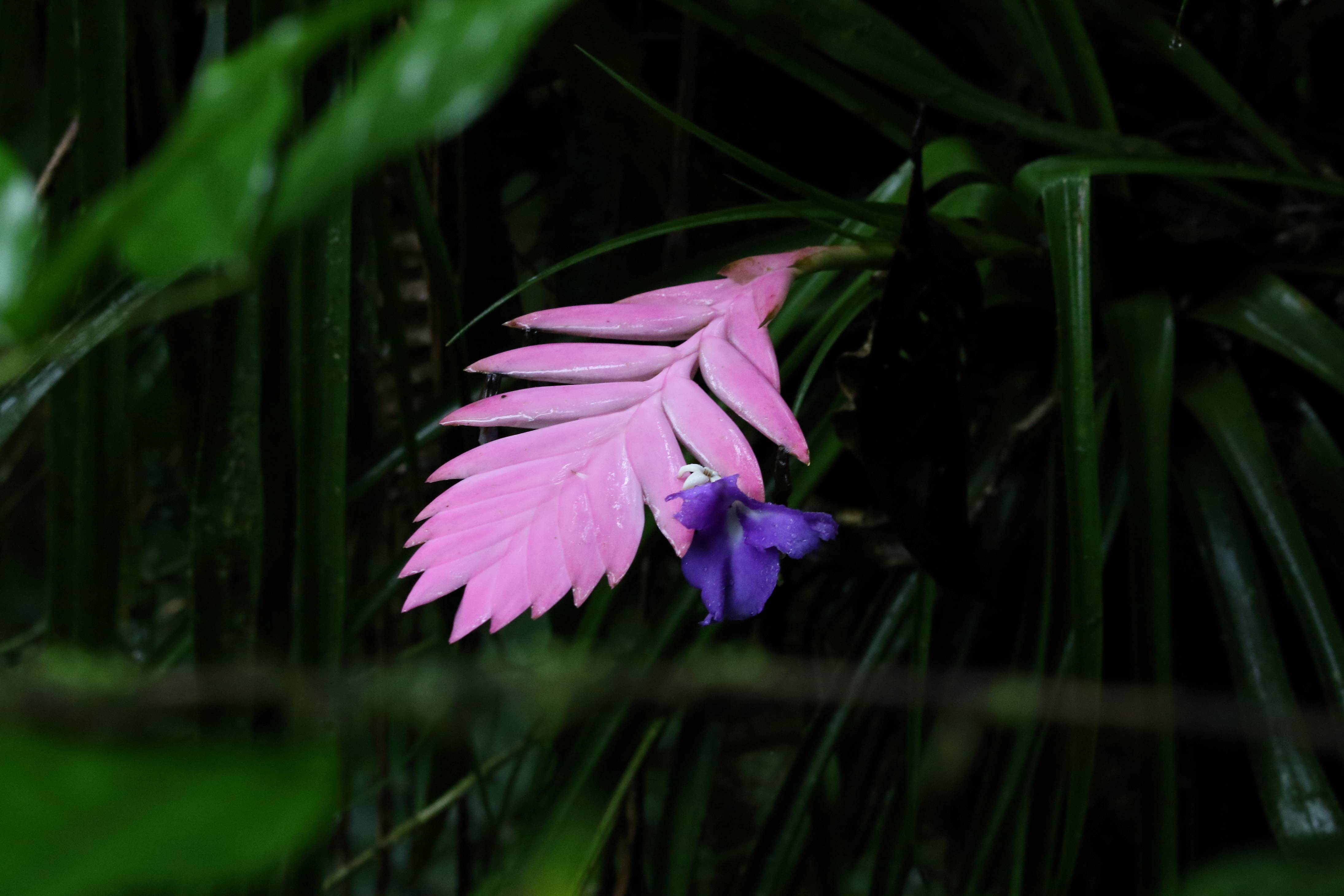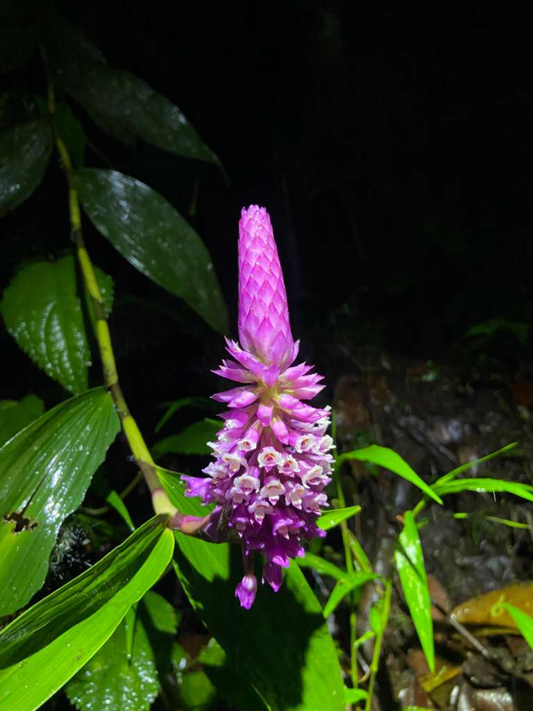 It started, seemingly to my untrained eye, with bright splotches of purple decorating all levels of the forest. Two different species of epiphytic plants began flowering at the start of the month, one an orchid (Elleanthus sp.), the other a bromeliad (Wallasia sp.). The orchids grew outward, slowly opening each individual flower into a cone of bright purple. The bromeliad flowers sprung up almost overnight, like fuschia colored ferns unfurling to give way to deep violet petals at the tip. In subsequent haste, different pinks began to pop up all over the forest, providing the fast-moving hummingbirds with ample nectar to keep their hearts beating fast and their heads full of pollen.