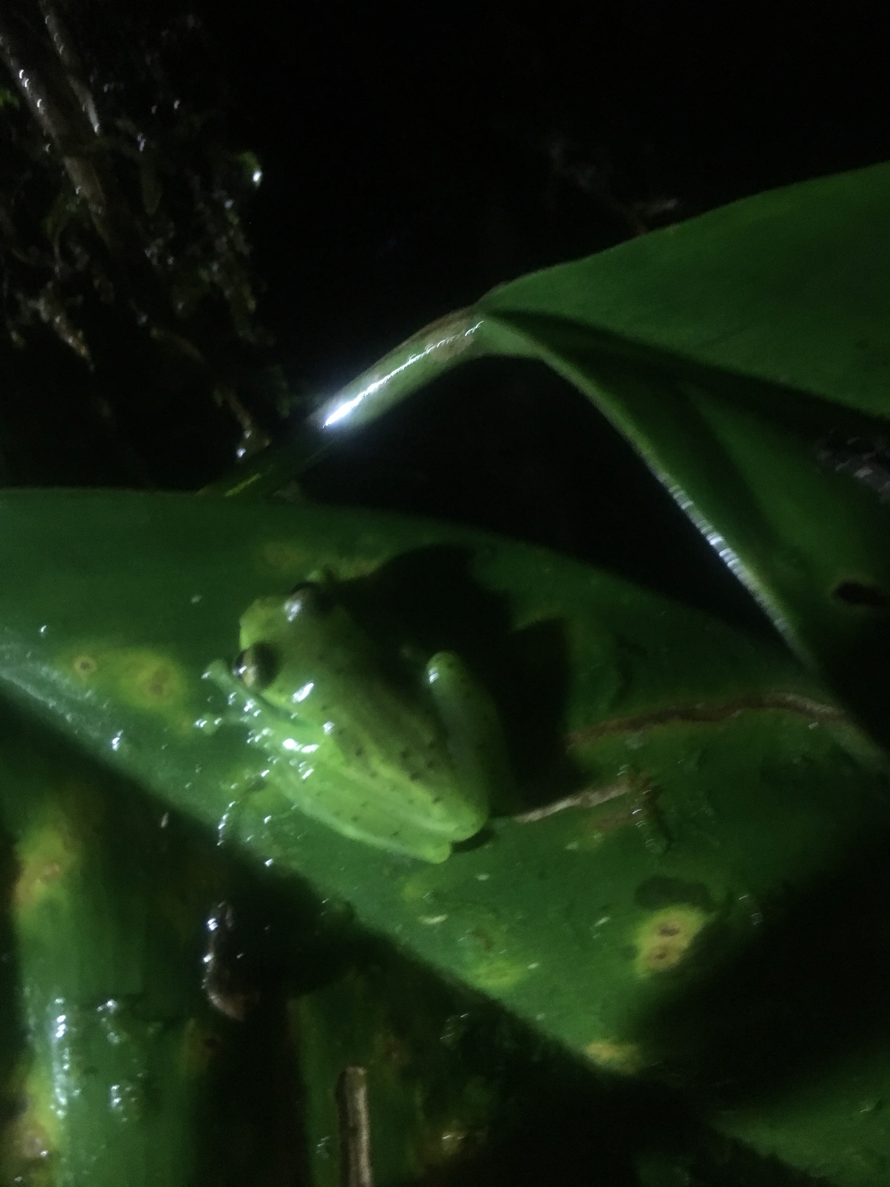 Emerald Glass frog found on the Patos Trail