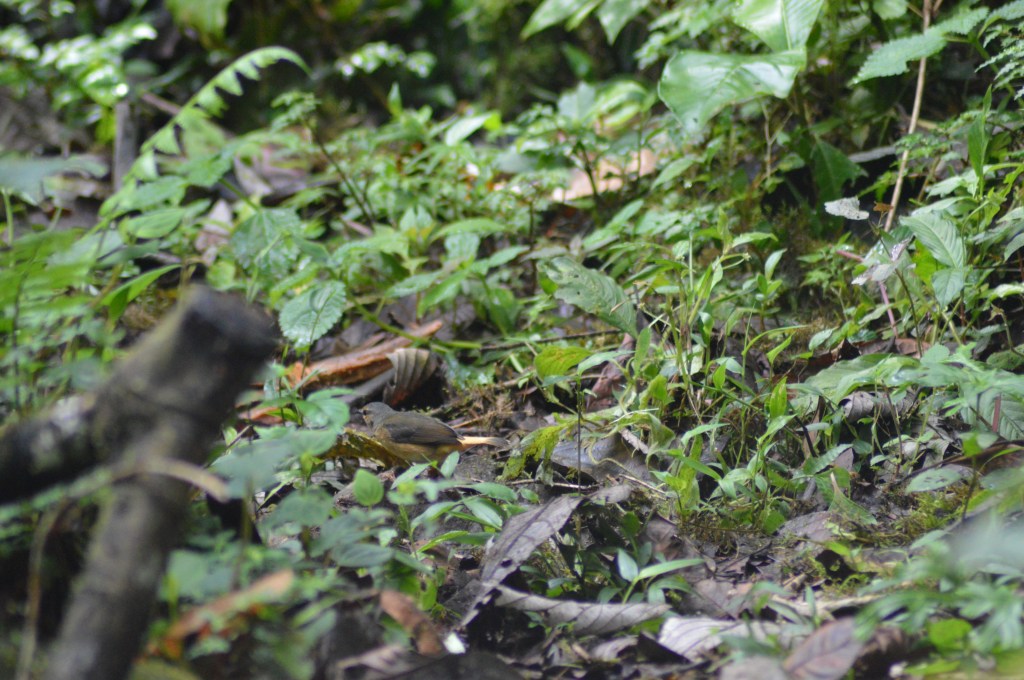 While many people think of the tropics as a birdwatchers paradise, this is often a deceptive misconception. Yes, the rates of endemism and biodiversity are unparalleled. It is very easy to move up or down a thousand meters and easily see ten or twenty birds you’ve never seen before (as I recently did with a friend, taking taxi just twenty minutes up a nearby road to a higher elevation zone and getting to see many new species of tanagers and hummingbirds that occur on the reserve but much less frequently). Despite this, the combination of low light, the rain, the bugs, and the fact that many of the birds you are hoping to see flit sporadically between tree branches a fifty to a hundred feet above your head can be absurdly frustrating. This is a challenging and rewarding part of birding on the reserve. Because of this, every new species you see is that much more satisfying. For me though, one of the most difficult and gratifying parts of birding here has been trying to find the ground birds.