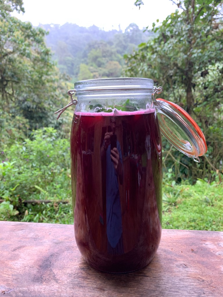 Of course, not everything we consume is fermented. Normally, Emily and I are far from vegetarian, so our diet has shifted quite a bit since coming to Ecuador. That also means we’ve had to develop a new rotation of meals to cook. We’ve taken to frequent meals of coconut curry, Pad Thai, fajitas, chili, and lots of scrambled eggs with vegetables, often served with Emily’s “zucchini patties.” Other meals and desserts have come out of the Managers’ Cookbook, created by past managers, and updated over time. The humble potato soup has been a winner; multiple guests have asked for the recipe. We like to add black-eyed peas and cabbage and/or kraut for more substance and variety.