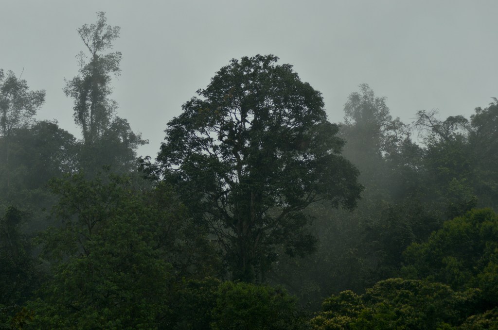 Logan emerged from the trail, arms raised in a shrug and looking for an explanation as to the sound. I filled him in on my encounter with what I now know lovingly as the forest chicken. The Dark-backed Wood Quails began their call again, this time together in a duet. We stayed and listened for a while enjoying the morning drizzle and the views afforded to us by the small spaces in between trees, revealing small glimpses of distant deep green hills embraced by fog.