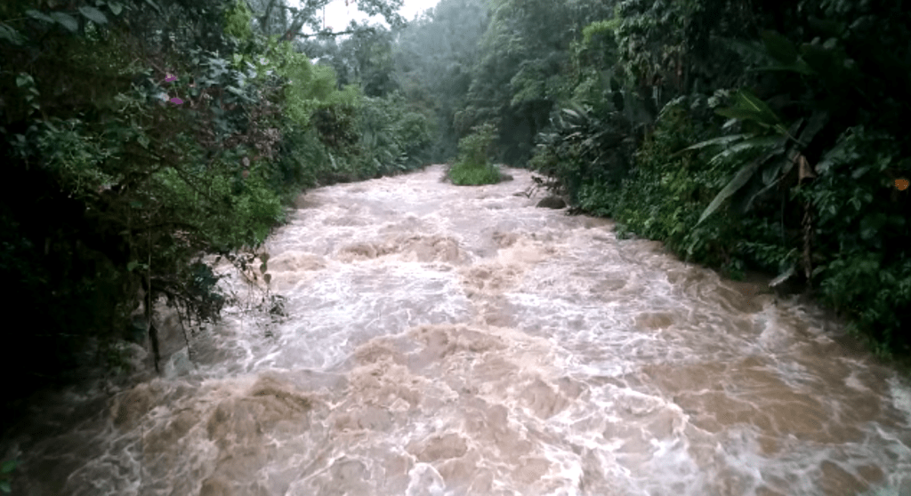 Oh the water trail. I do love it, but it is without a doubt the most treacherous trail on the reserve (for which reason it’s closed to visitors. Just us managers get the joy of walking it). It starts with a steep slippery incline, tricks you into thinking it’s benign with a couple nice fairly level curves, then becomes an off camber slip fest of flattened plants pretending to be a trail. Soon you find yourself nimbly holding a large bolder that you slip around above a big enough fall to make you worry before entering the canyon section. The canyon section involves a longer than you think slippery (again) scramble through a large creek that turns into several small cascadas requiring a couple small rope ascents and swings and a final short scramble to the last cascada where the intake sits. It’s actually really my favorite trail on the reserve. However, I don’t like hiking up canyons when an inch or more of rain can fall on any given day and change the creek to a flood, so as we hiked up the trail I very much hoped that we didn’t have to head up that last bit, as exciting as it is.